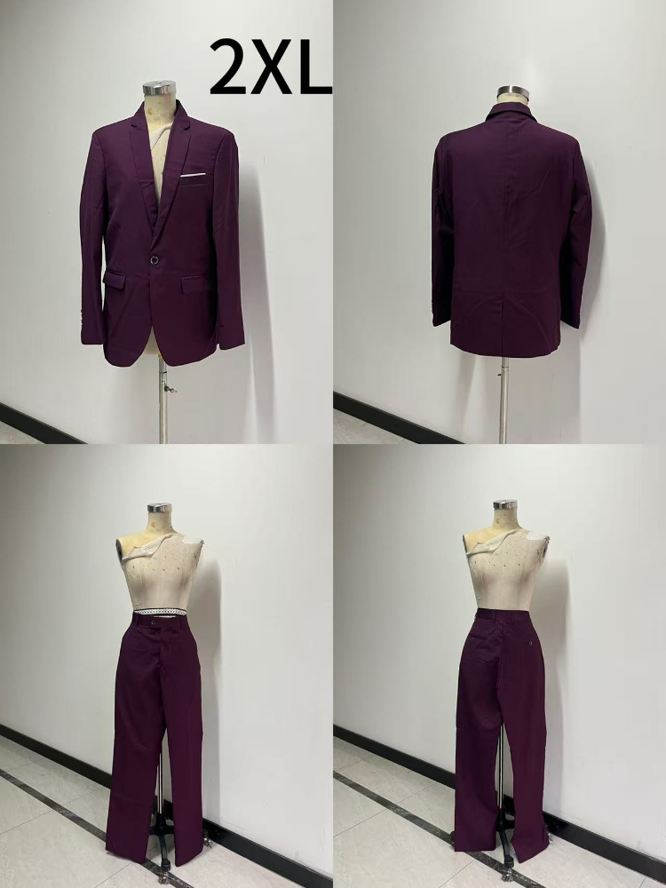 Details: Jacket features a single chest pocket and two flap pockets. Pants feature a clean waist with belt loops and a straight-leg cut.