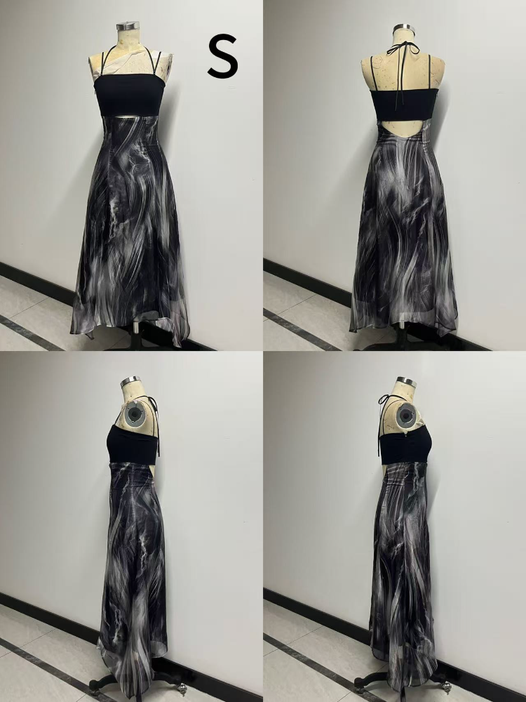 Details: Adjustable halter neck tie, elasticized back waist for a flexible fit, asymmetric handkerchief hem.