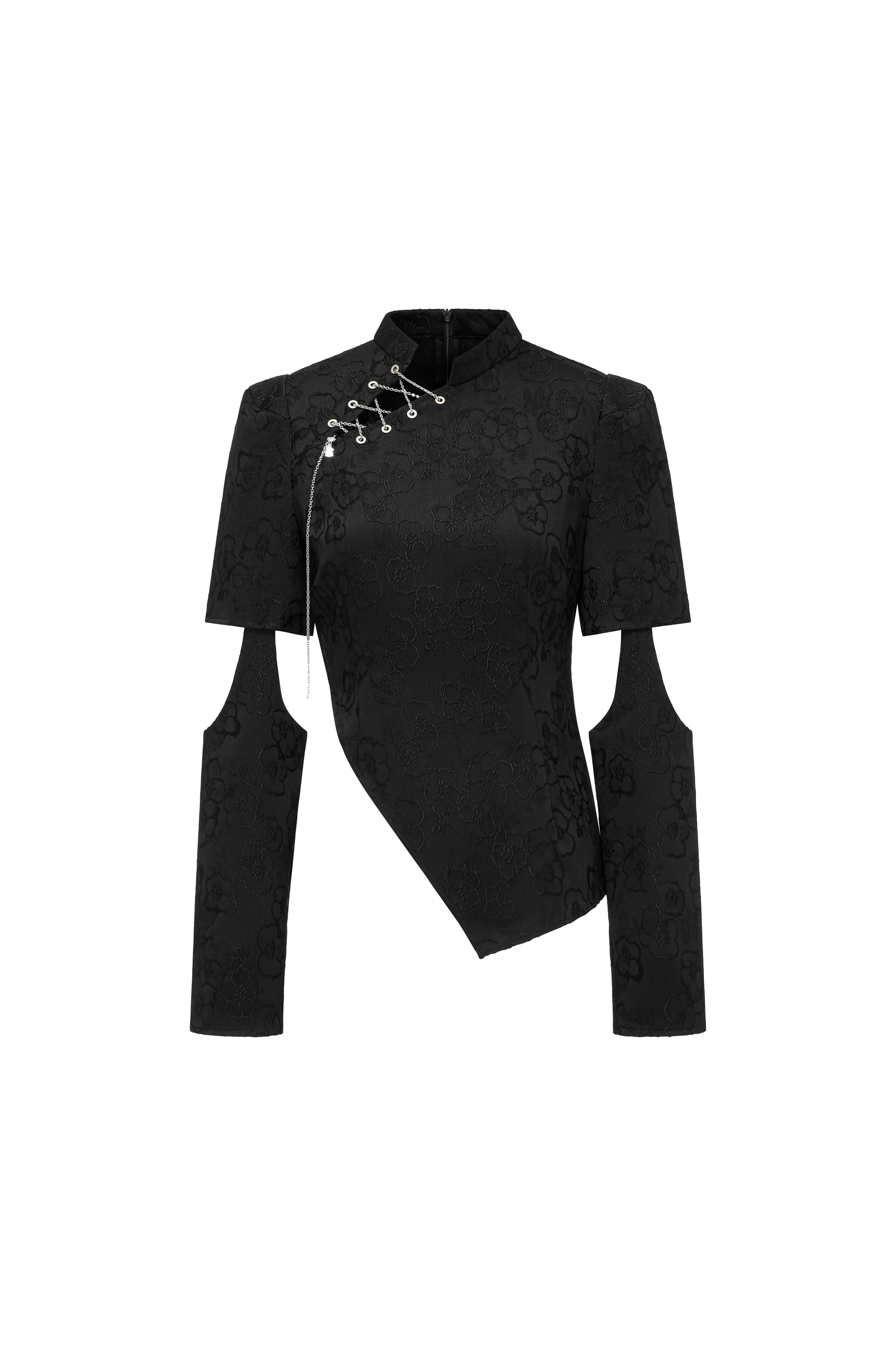 Fit:  Asymmetrical Metallic Chain Cheongsam Top