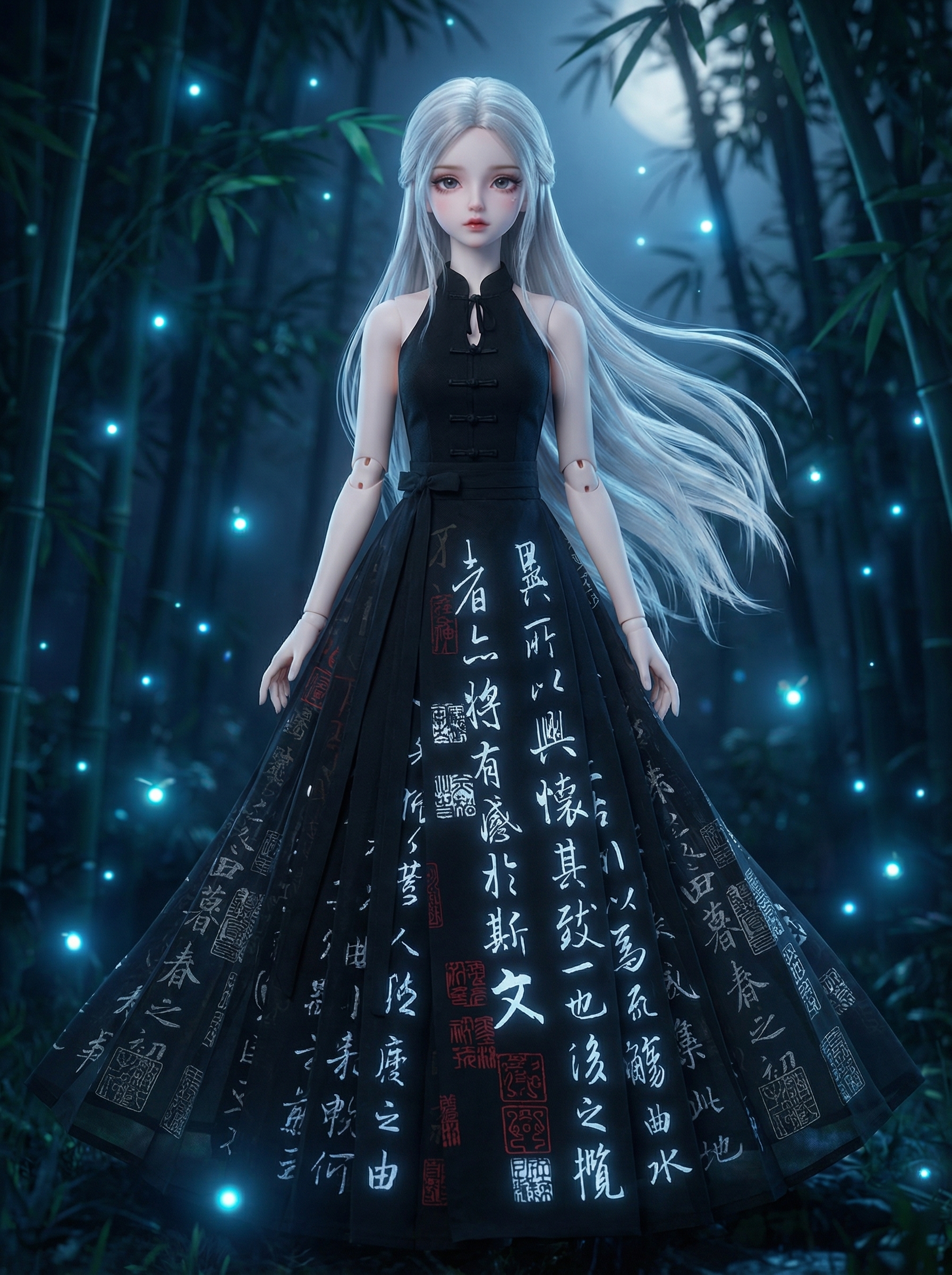 📜 Product Description: Immerse your doll in a mystical, literary aura with our "Night Script" Neo-Chinese gown. Inspired by ancient Eastern calligraphy and dark zen aesthetics, this dress is a true statement piece.
