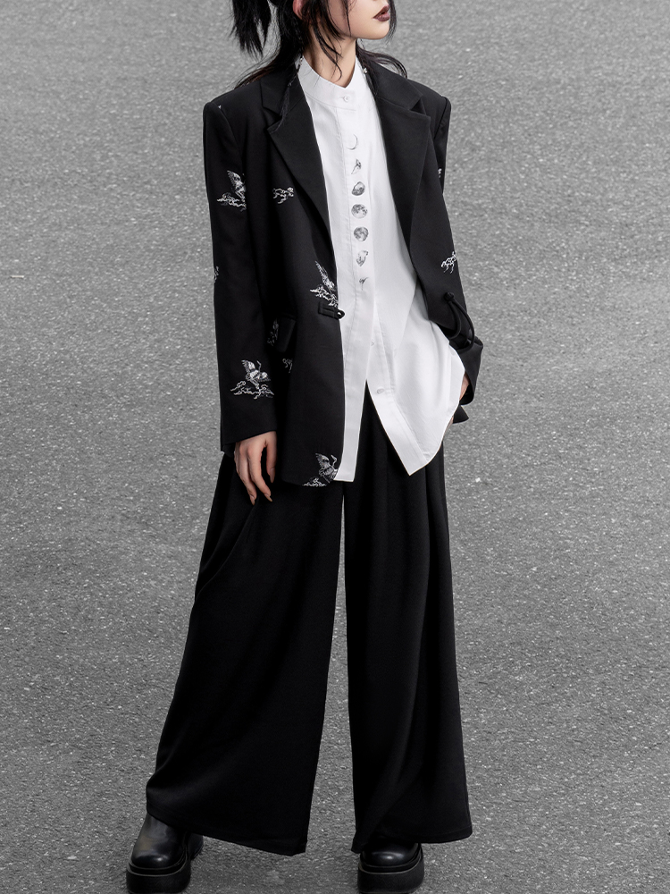 Crane Embroidery Blazer