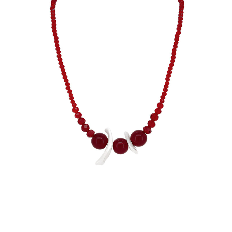 Crafted with red round beads, highlighted by three larger beads and silver curved elements. The contrast between red and silver, along with clean, flowing lines, creates a sense of vibrant rhythm—delivering a bold yet refined style.