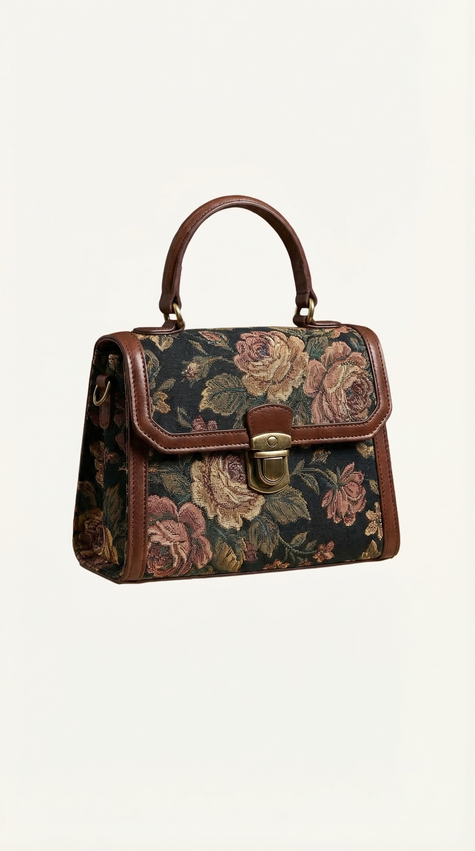 The Floral Tapestry Top Handle Bag brings together vintage elegance and everyday wearability. Designed with a structured top handle silhouette, rich floral tapestry paneling, and warm brown trim, it adds character and polish to both casual and dressed-up looks. A romantic statement piece for those who love timeless details with a refined finish.