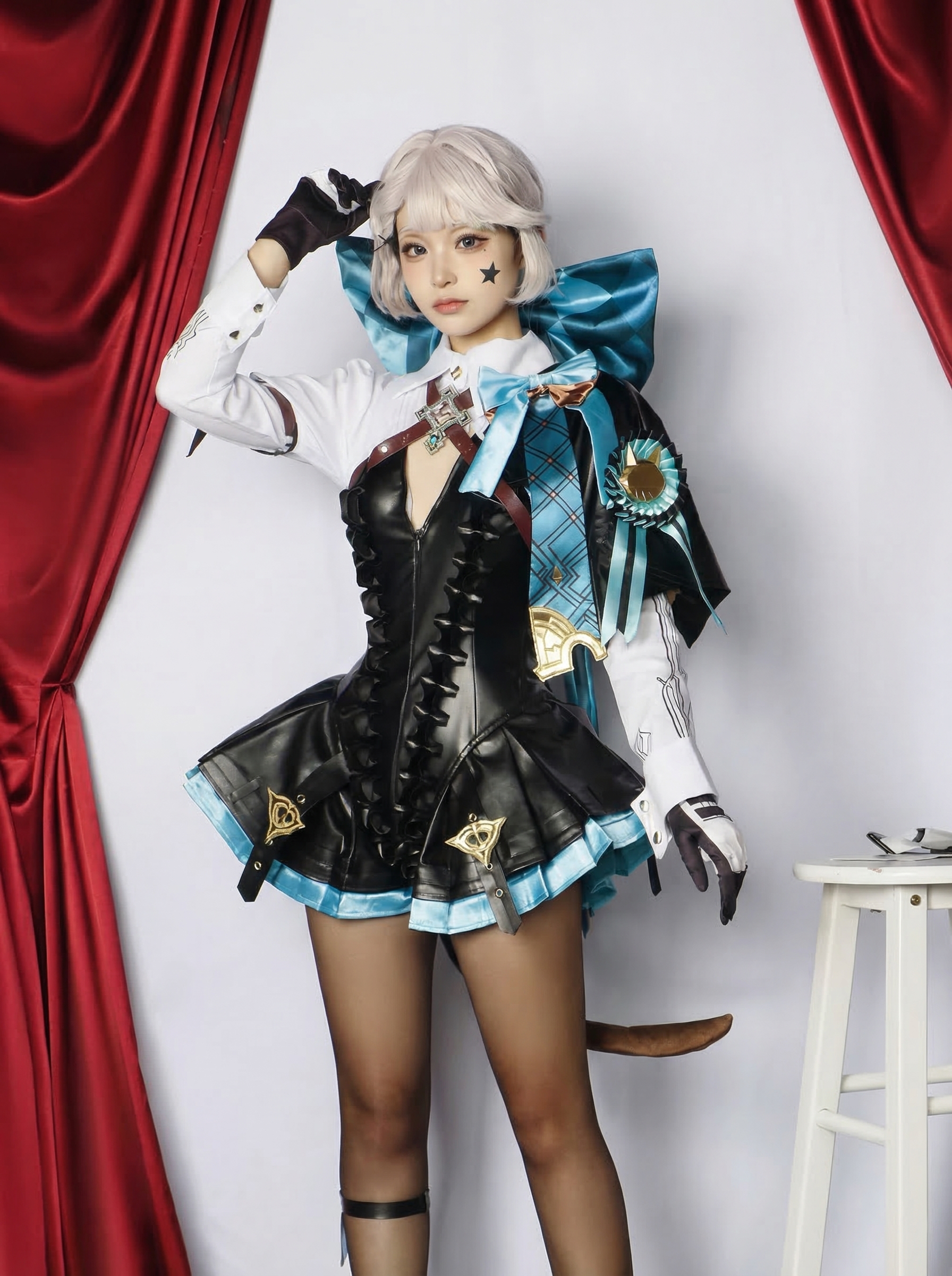 • Exquisite Details: Features game-accurate accessories including the iconic chest ornament, metallic accents on the skirt, and the beautiful blue back-bow.