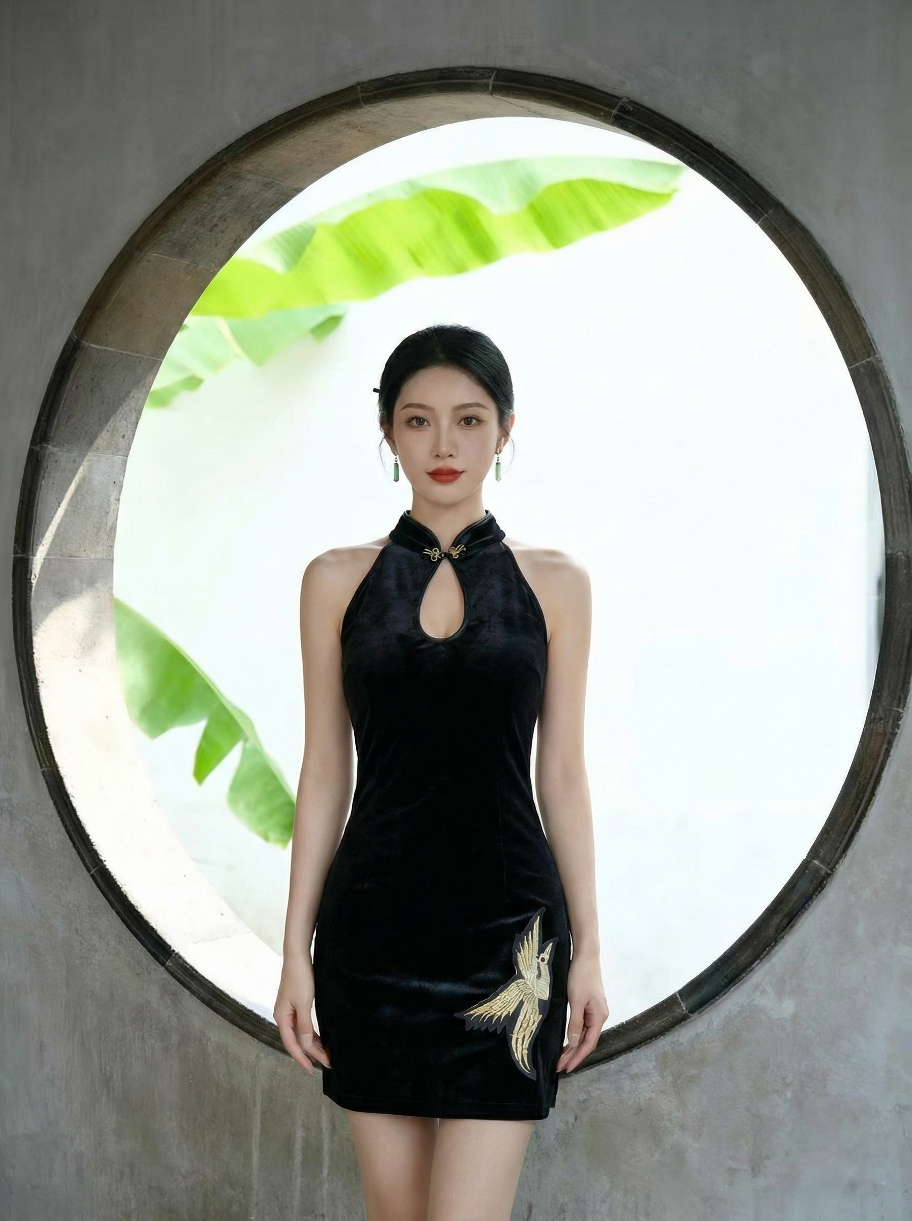 Sculptural Halter Neck: A contemporary halter design with a daring central keyhole cutout that beautifully frames the shoulders and décolletage.