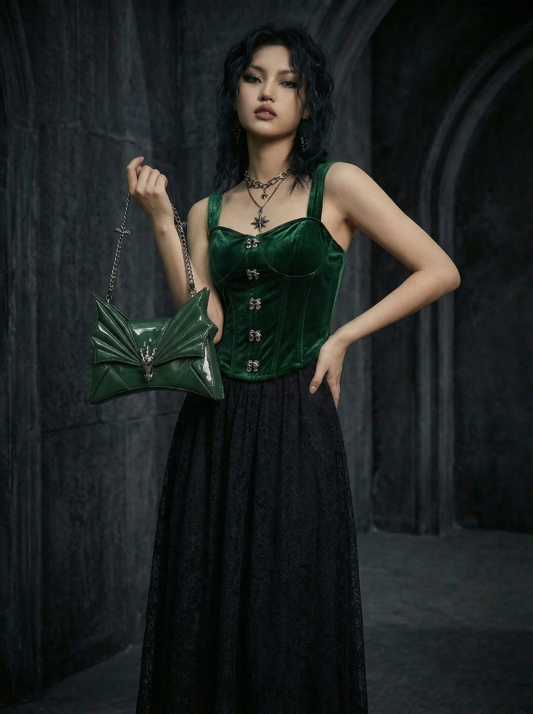 Top: 95% Polyester, 5% Spandex (Velvet); Skirt: 100% Nylon (Lace Overlay), 100% Polyester (Lining)