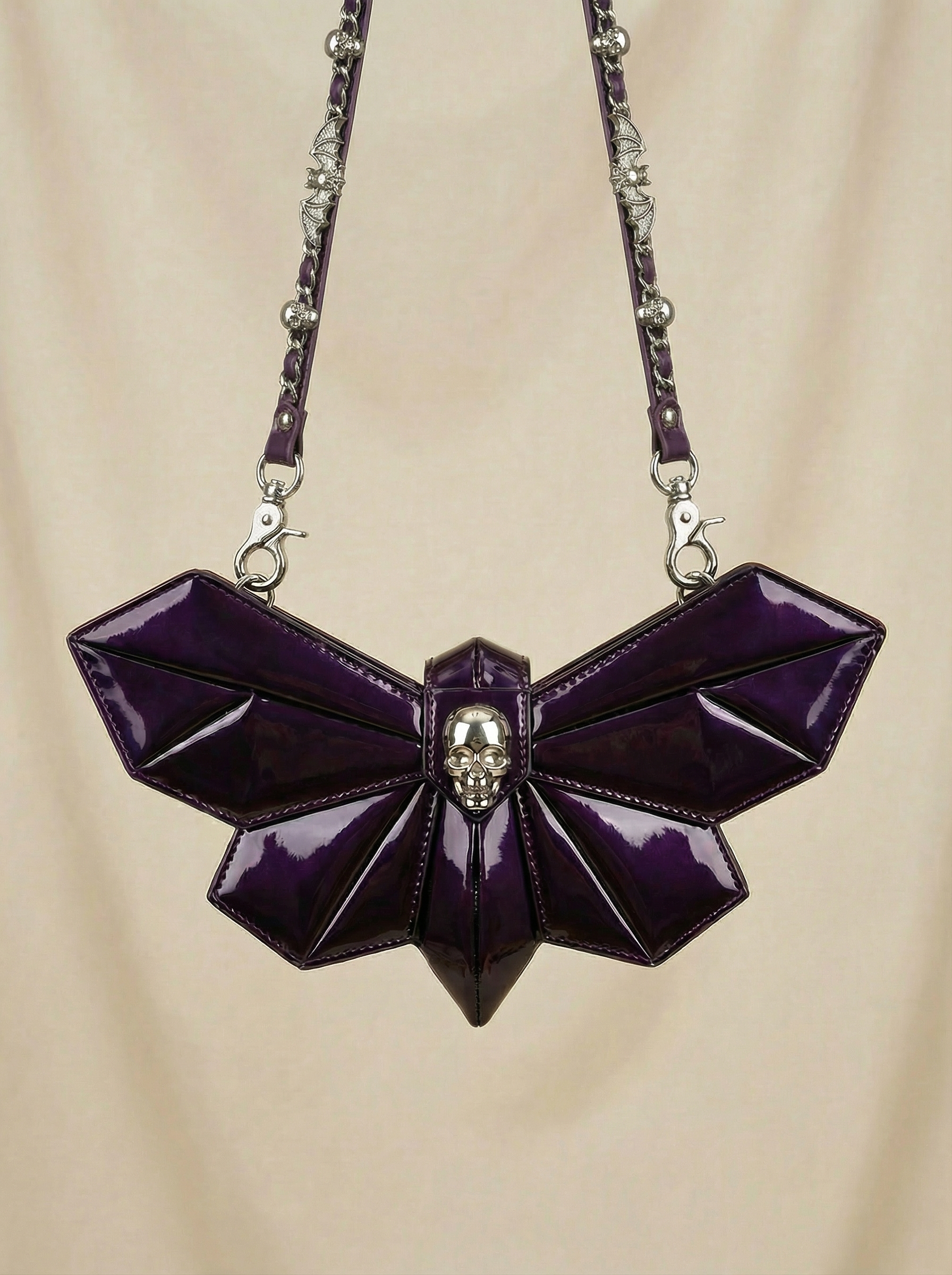 - Keep the skull hardware and decorated chain strap dry to prevent tarnishing; wipe gently with a dry cloth after use