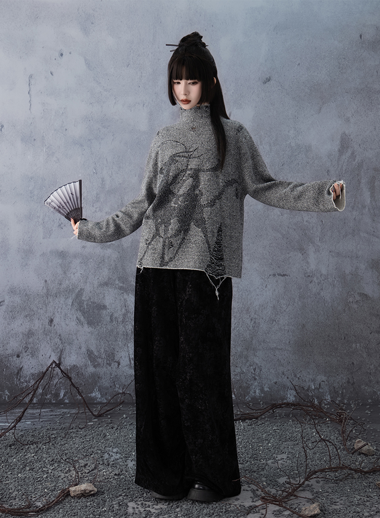 Featuring a high-neck design, this piece is both retro and warm while outlining an elegant neckline. The animal jacquard motif draws inspiration from traditional Chinese patterns, as if stepping out from an ancient painting, adding a sense of mystical Oriental charm. With a relaxed fit that flatters diverse body types, it offers ease and comfort in everyday wear.