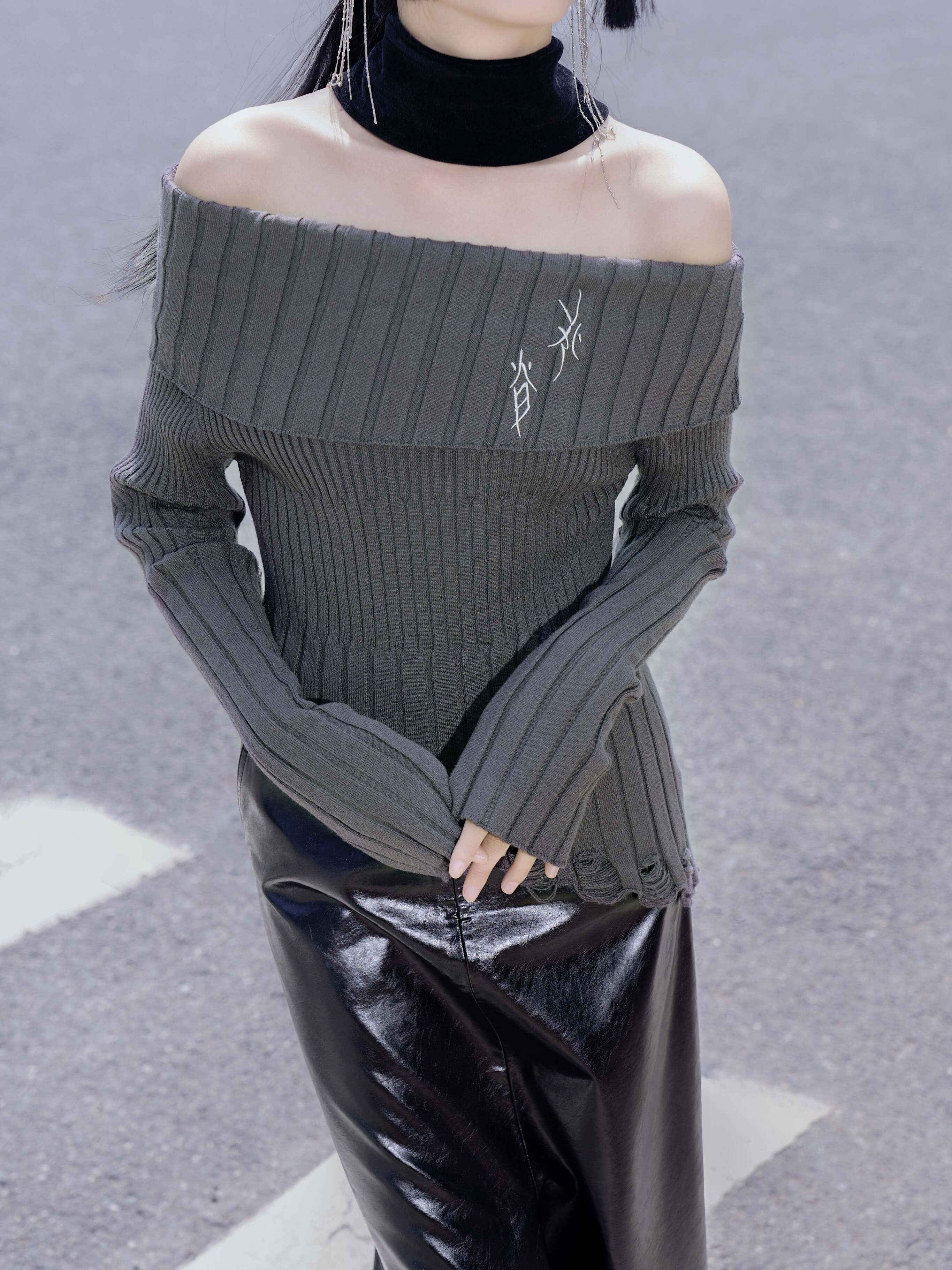 The embroidery features the Nüshu script for "Prosperity" ("暴富"), symbolizing good fortune and wealth. The irregular frayed hemline adds a strong design element.