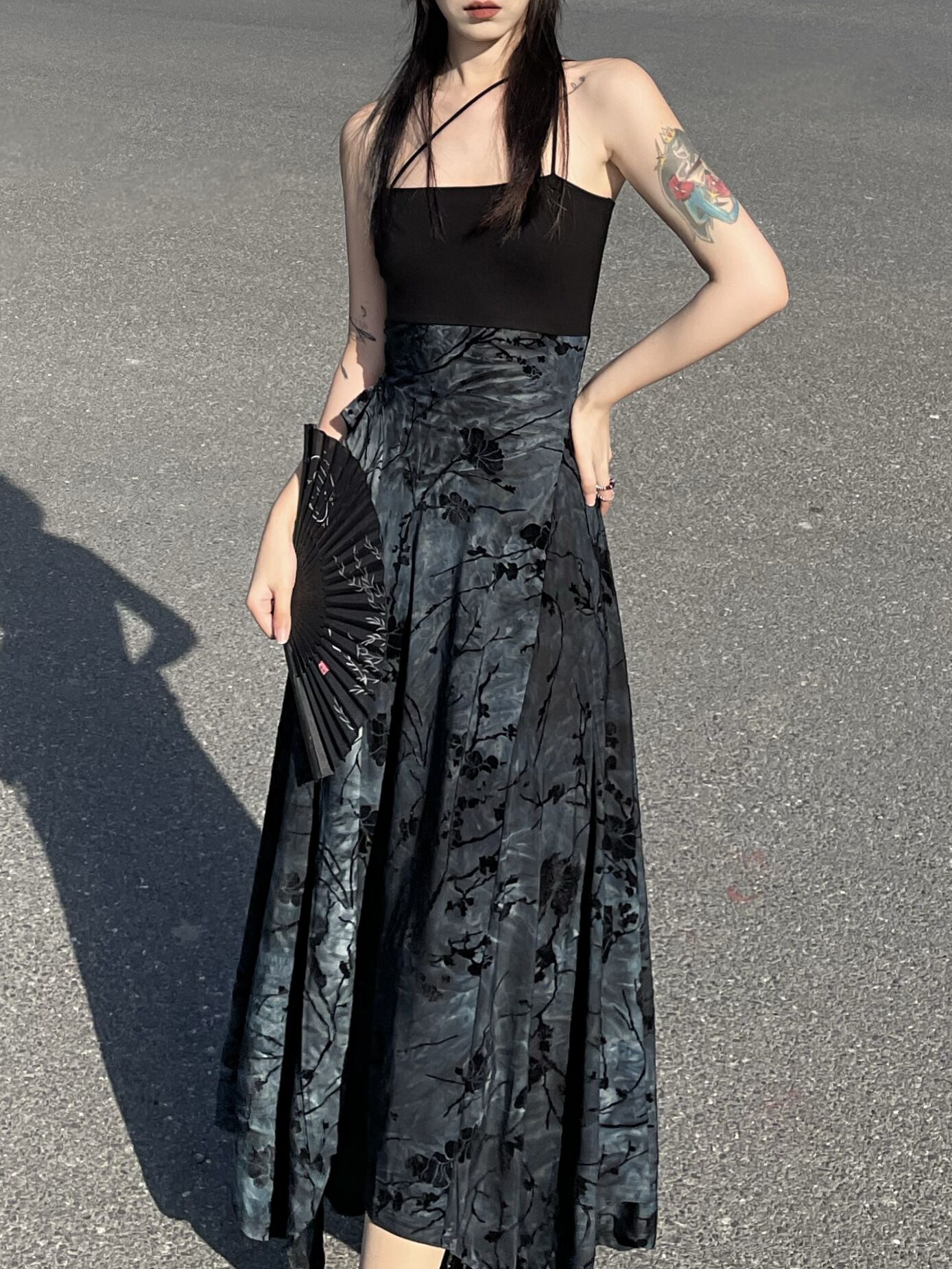 Features three-dimensional plum blossoms in traditional Chinese dyeing, with stretchy knit fabric that flatters and shapes. High-low hem enhances the silhouette.